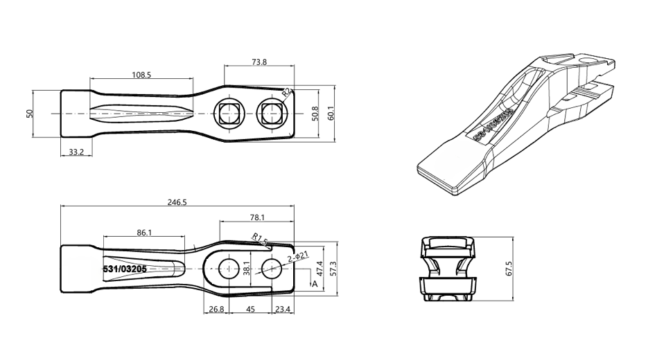 Ząb środkowy koparko-ładowarek JCB 531-03205