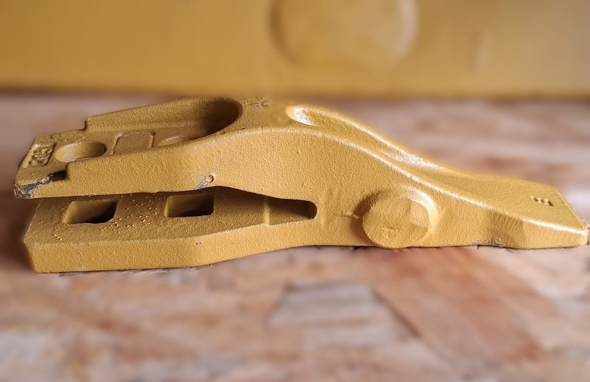 Ząb środkowy, przykręcany na dwie śruby, stosowany w koparko-ładowarkach JCB